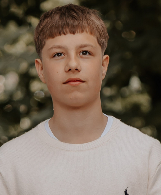 Han er fuld af gode og meget fantasifulde historier, som han elsker at fortælle. Han kan imitere og har hele kroppen med, og når han bliver revet med af en af hans fortællinger, lever han sig ind i rollen som de figurer der er med i historien og så spiller han skuespil overfor os. Han har mange ansigter og stemmer. Det er alt fra vilde dyr, gamle mænd, dinosaurer osv. Han er rigtig god til at kopiere andre, når han fx ser fjernsyn. Og han kan huske lange replikker og sange. Han er vild med at danse, hvor han også gerne fortæller en historie med sin dans og krop. Det er noget der ligger helt naturligt for ham, og han elsker når vi ta'r billeder eller film af ham. Han er også begyndt at trylle og her er han en rigtig entertainer.